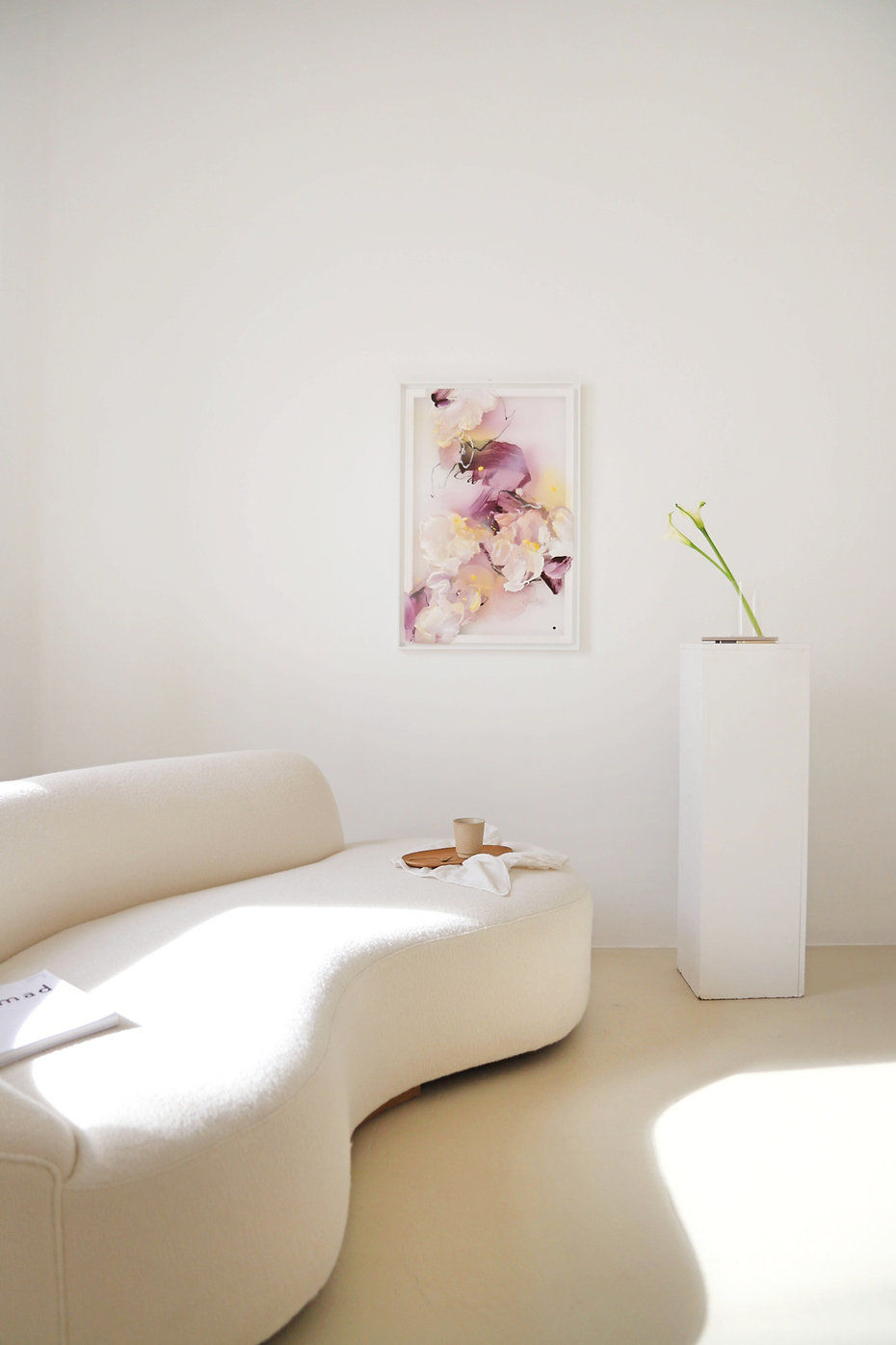 The pastel palette evokes a dreamlike quality where the floral elements, carry a symbolic weight, representing the beauty that can be found in simplicity and the quiet elegance of nature's choreography.