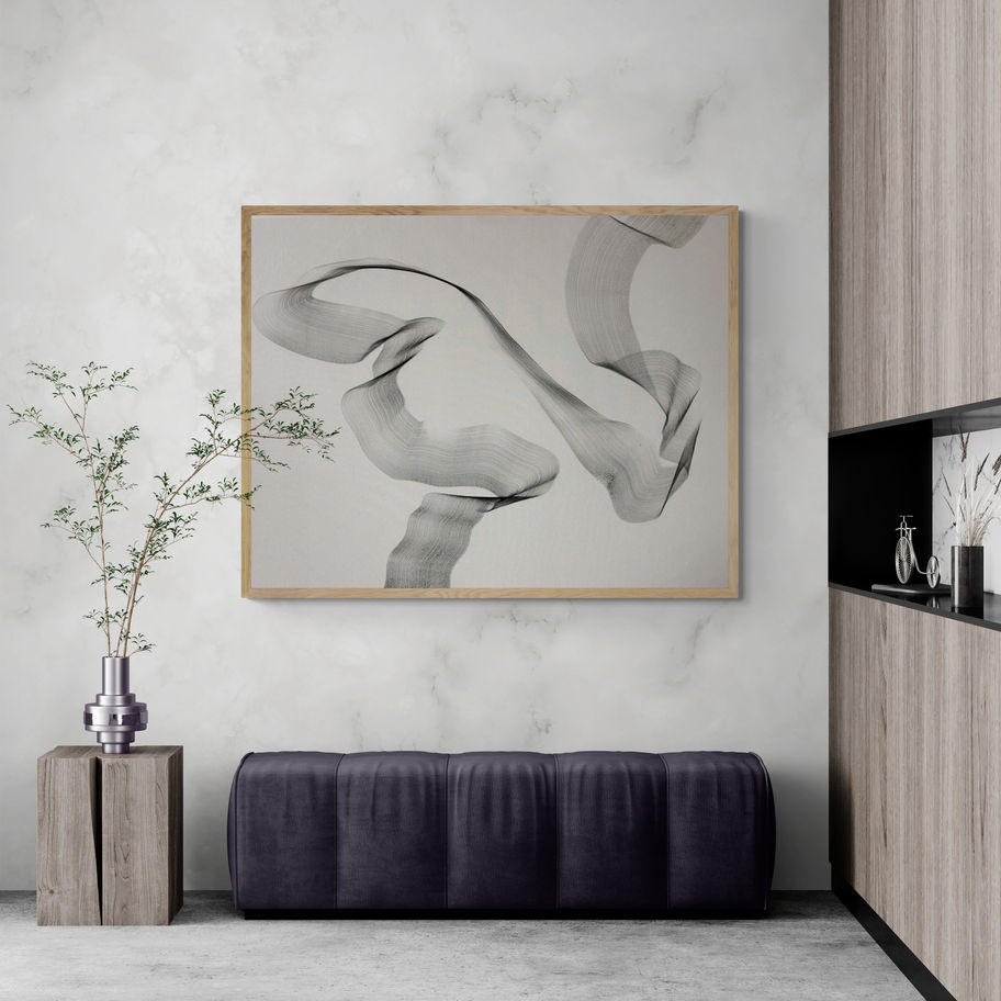 A single brushstroke gracefully divides the canvas, evoking the boundless nature of water. This simple yet powerful line embodies the calm and clarity of Zen philosophy.